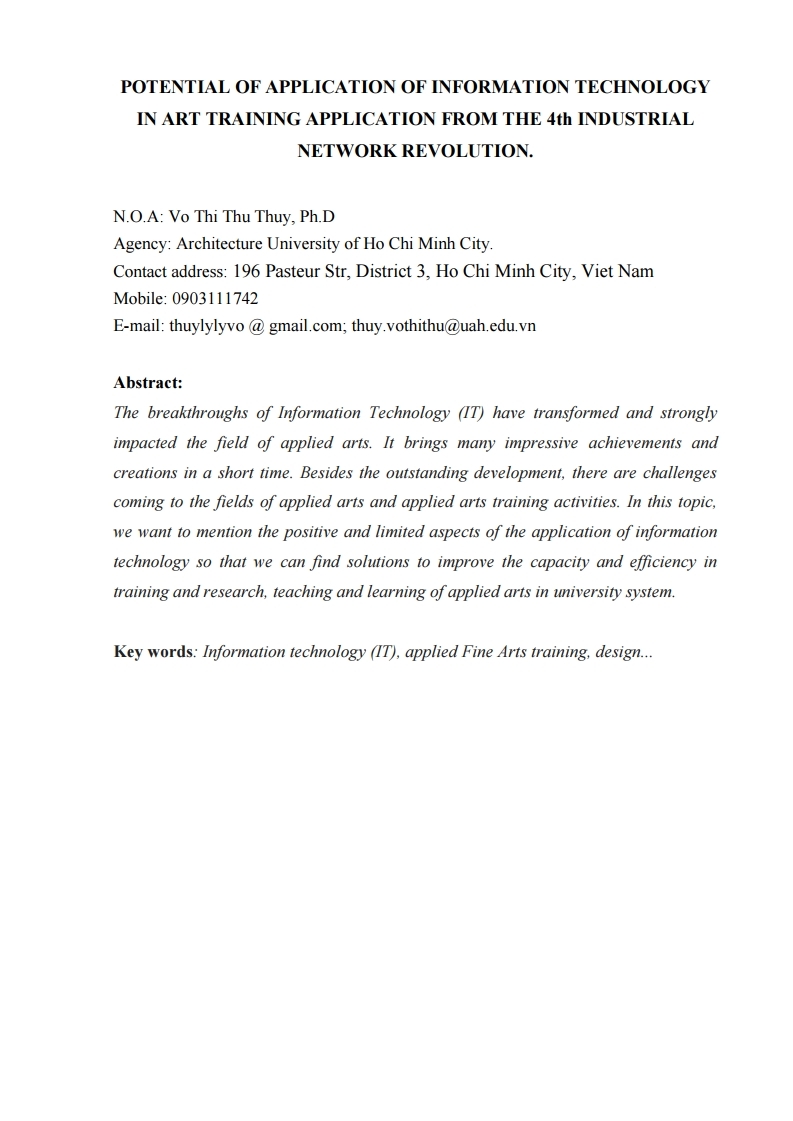 Art and Design Training in Vietnam under the impact of 4.0 Indu