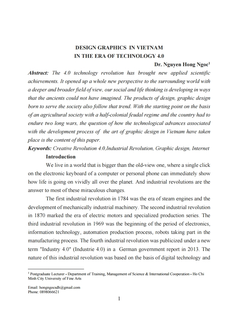 Design Graphics in Vietnam in the Era of technology 4.0 (DR.NGUY