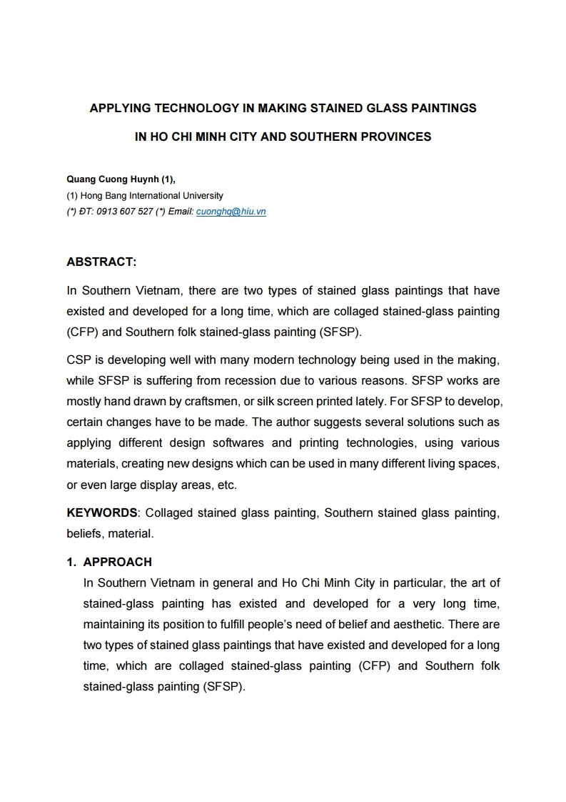 APPLYING TECHNOLOGY IN MAKING STAINED GLASS PAINTINGS IN HO CHI